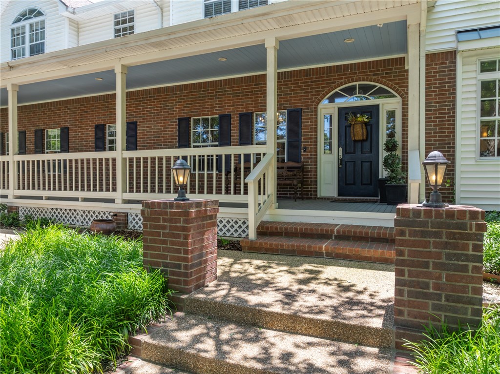 This incredibly rare and beautiful 4.12 acre property, located on coveted Hambleton Drive off Chapel Road, has the peace and privacy of country living right in the heart of the city! The home is a meticulously maintained 4,740 square feet, featuring FIVE ensuite bedrooms (two share a Jack & Jill bath), 4.5 bathrooms, a show-stopping kitchen that was completely remodeled by Palmer Davis in 2021, a geothermal HVAC system, and an upstairs bonus room that spans the full length of the three-car garage and boasts floor-to-ceiling windows and a kitchenette. The remodeled kitchen is a chef's dream, complete with gorgeous custom cabinetry, quartz and granite countertops, a gas stove, an additional sink in the island, a huge walk-in pantry, and a separate built-in buffet wall and beverage center. Upon entering the home, you're greeted with a stunning corner parlor filled with light, built-in bookshelves, and a window seat overlooking the wide circle driveway. A lovely fireplace in the living room is the heart of the downstairs, and tucked away down the hall is a full ensuite, next to a separate side entrance, perfect for visiting guests. Across from the guest suite is a downstairs office with an additional storage room and direct access to the backyard. Upstairs you'll find a spacious primary suite with a separated office/sitting area, a private balcony, and new 8'' wood floors from 2022. Enjoy separate vanities and large walk-in closets in the primary bath, where a lovely bay window floods the room with light. The house is full of lighting upgrades, smart home features, a massive amount of storage, raised ceilings, and custom built-in shelving and cabinetry. All of the bedrooms have walk-in closets and three of them have built-in desk areas. For the craftsman, there is a separate workshop behind the third garage. Other recent home upgrades include a $15,000 Generac generator installed in 2023 with a backup 250 gallon propane tank, a 30amp RV plug in the 3rd garage bay, and a